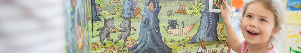 Die drei renommierten Bilderbuchkünstlerinnen Daniela Kulot, Sophie Schmid und Susanne Strasser zeigen in dieser Mitmachausstellung, wie ein Bilderbuch entsteht: Filme, die jeweils in den Ateliers der Künstlerinnen entstanden sind, gewähren einen Einblick in die tägliche Arbeit einer Bilderbuchmacherin, ein überdimensioniertes Bilderbuch lädt ein, darin Platz zu nehmen, im Schattentheater können mit den Bilderbuchhelden eigene Geschichte erfunden werden, ein geheimnisvoller Vorhang geht der Frage auf den Grund: „Woher kommen Ideen?“.